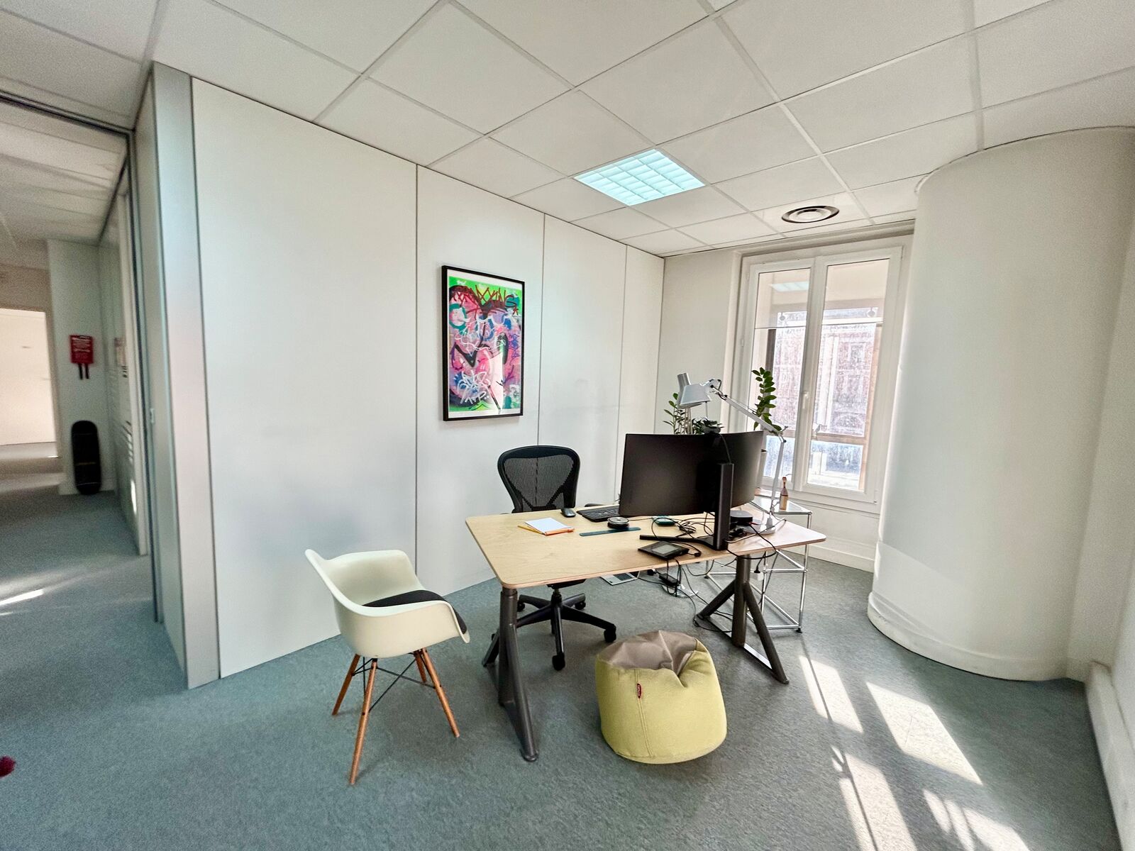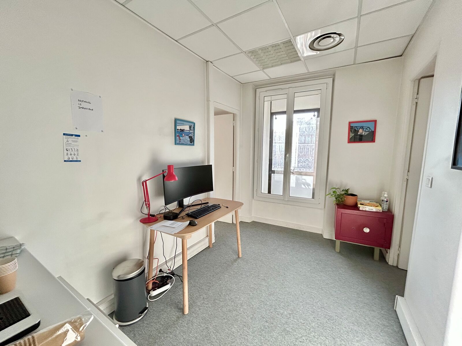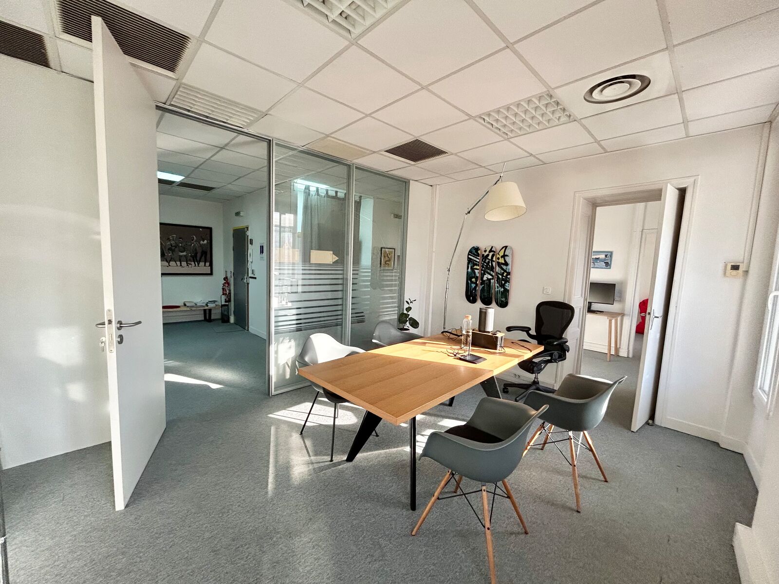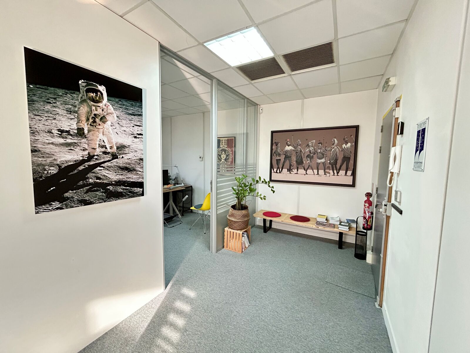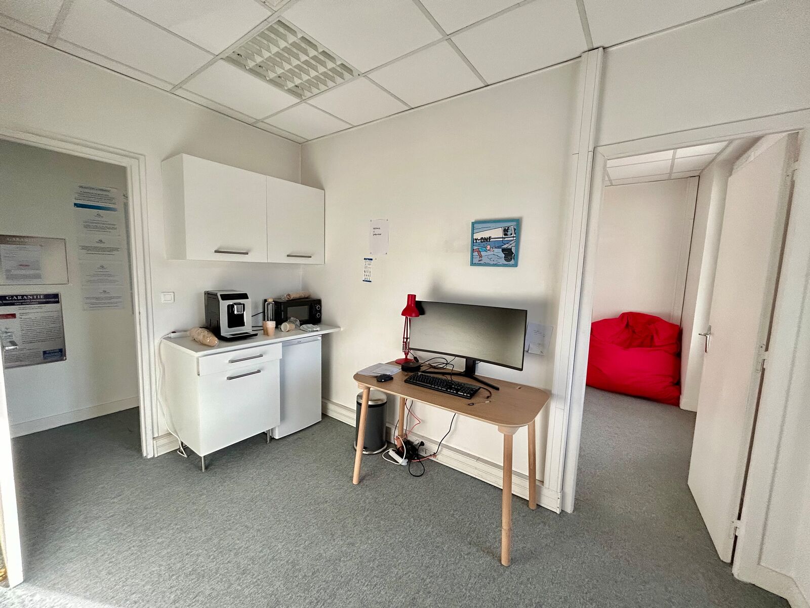 Accueil + 3 bureaux cloisonnés + 1 salle de réunion + 1 salle de pause + débarras