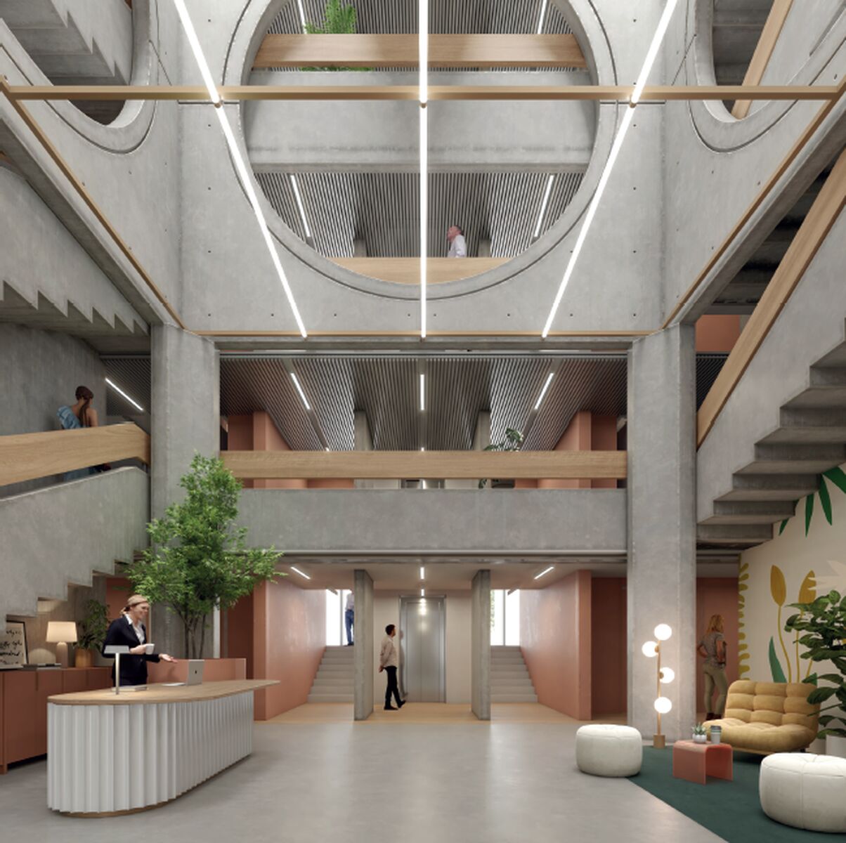 . Etages : 2,70m de dalle à dalle, traités en technique apparente