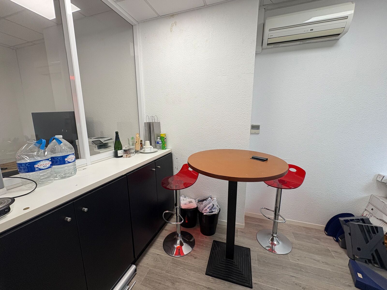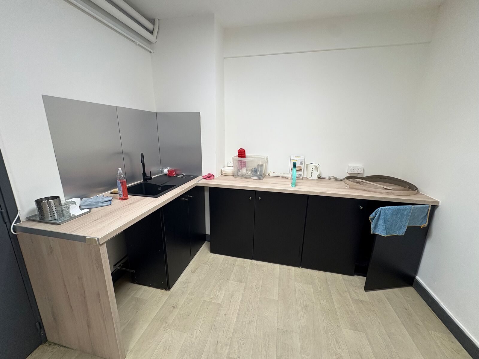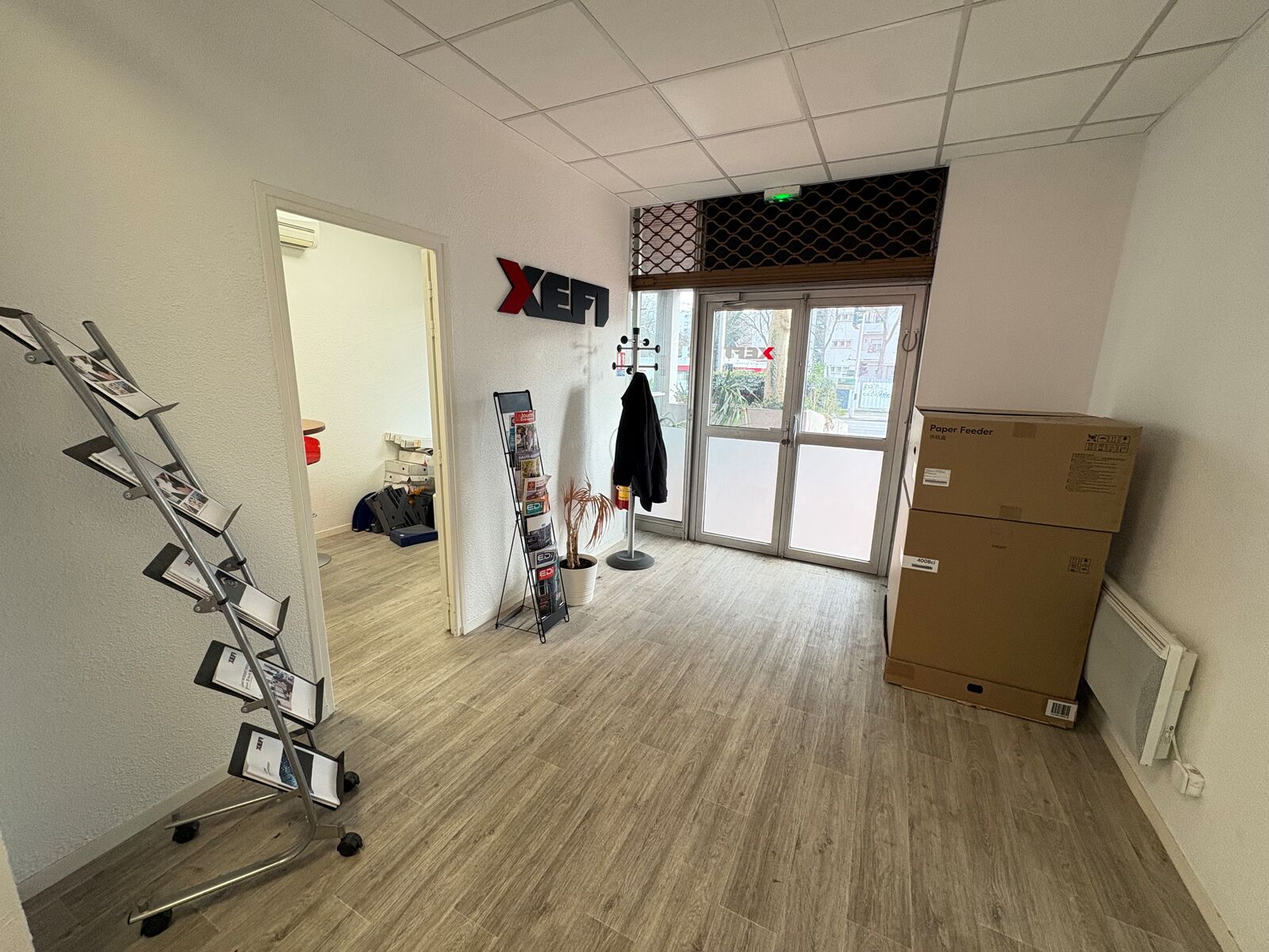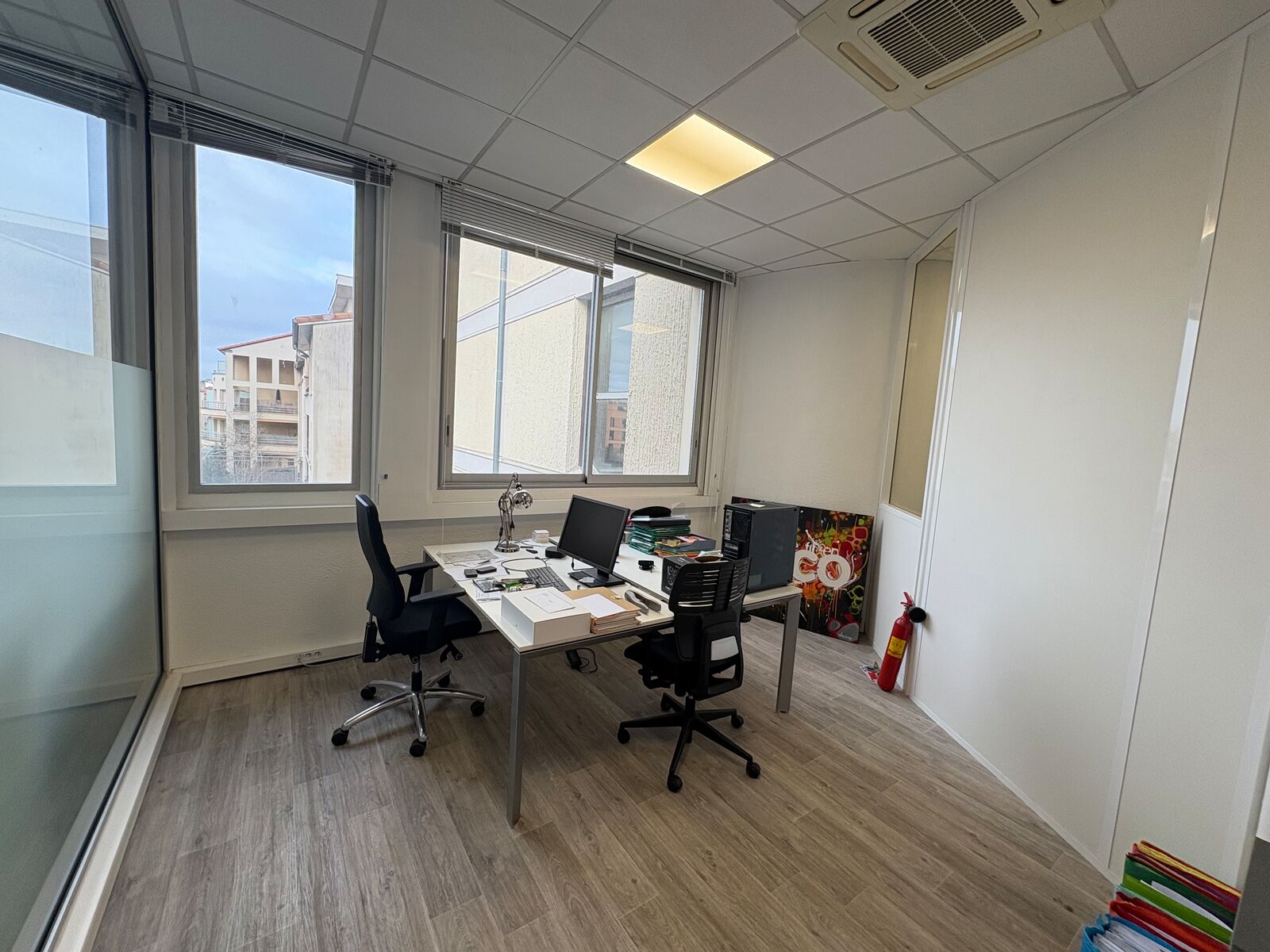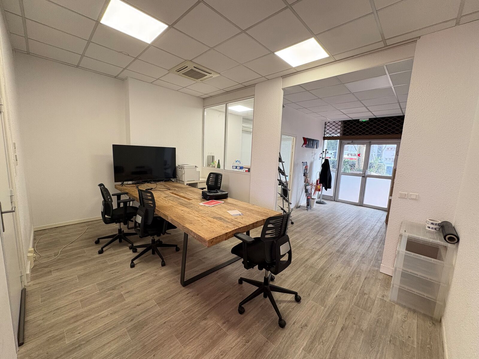- Rez-de-chaussée : espace accueil, 4 grands bureaux, un open space