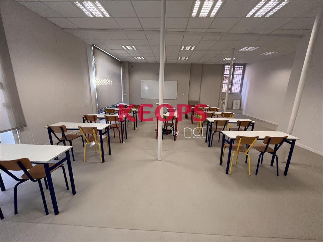 Aménagement actuel en centre de formation : accueil, salles de cours, bureaux, cafétéria