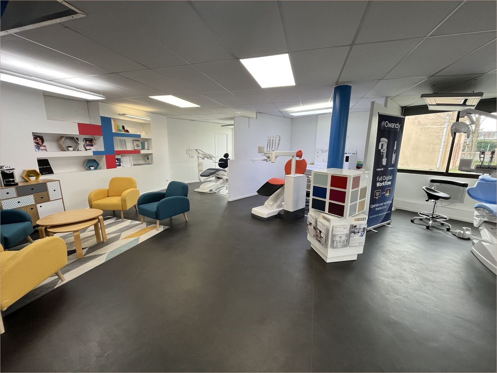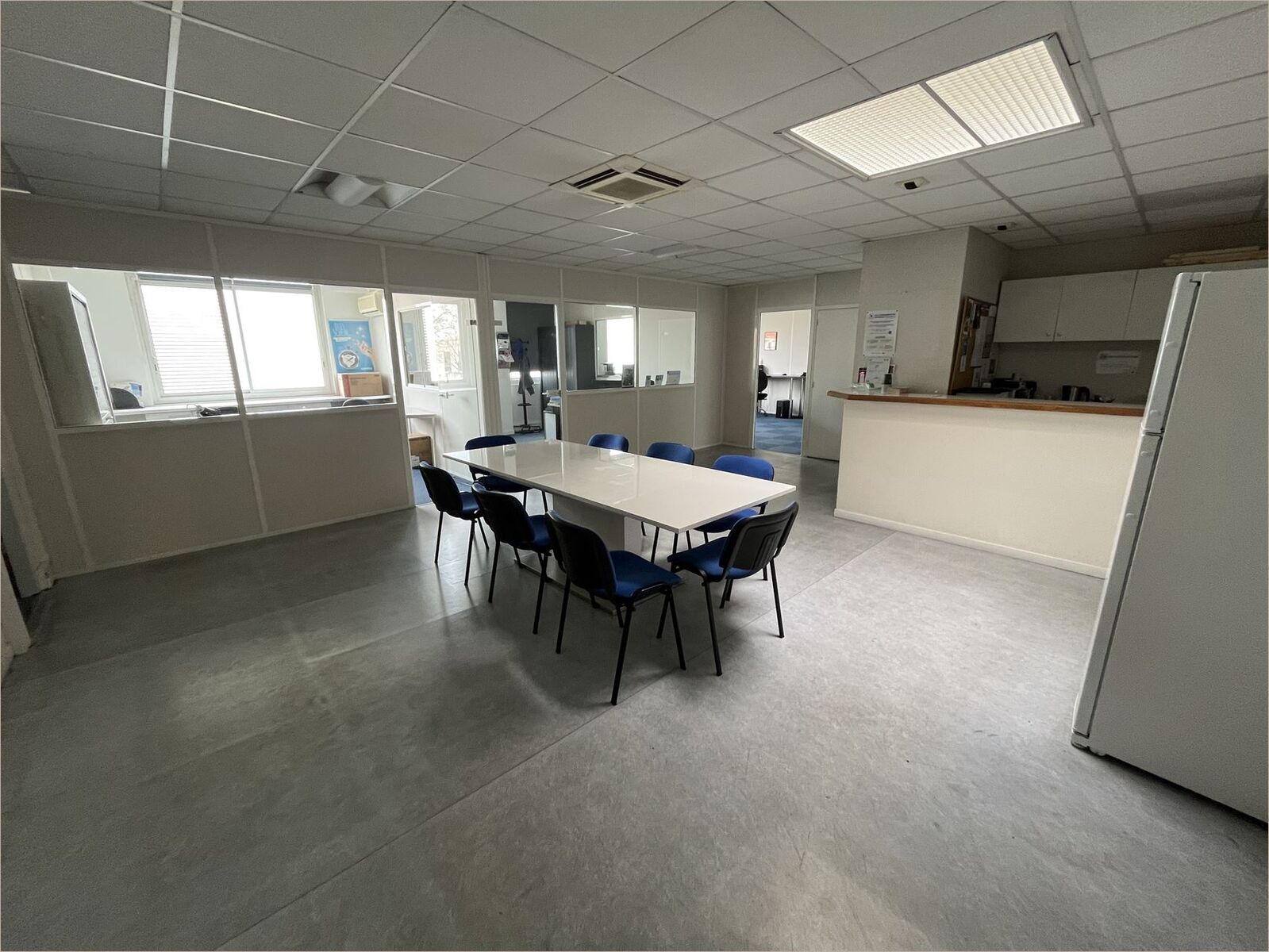 Showroom, salle de réunion, réfectoire, sanitaires, bureaux individuels...