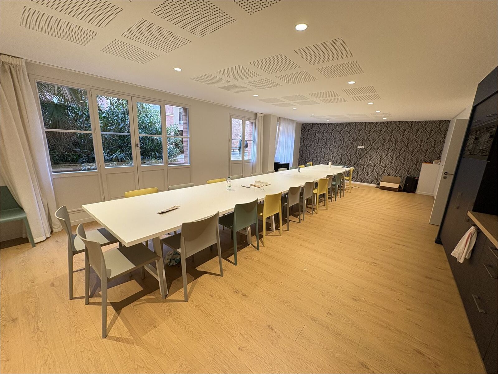 - RDC : Accueil, Salle de réunion, local de rangement, sanitaire PMR, grand réfectoire - 1er étage : 2 grands open space, salle de réunion, 1 grand bureau, salle serveur, sanitaires ...