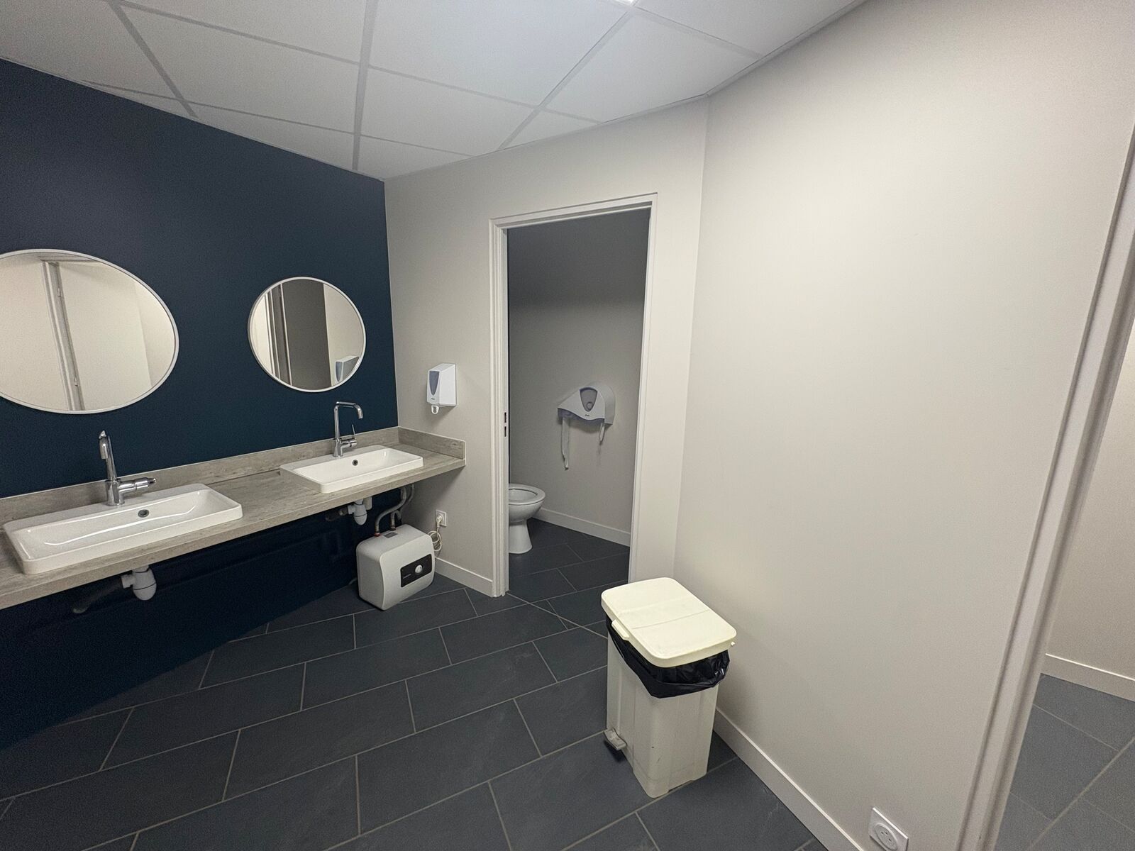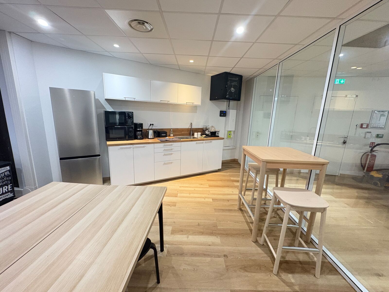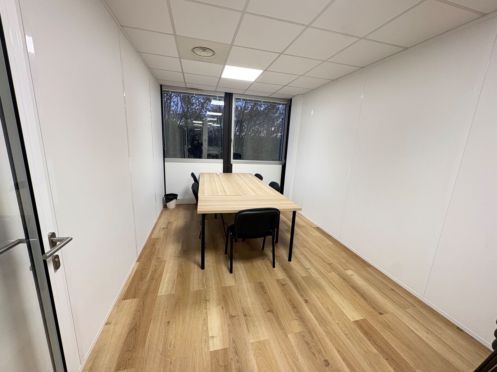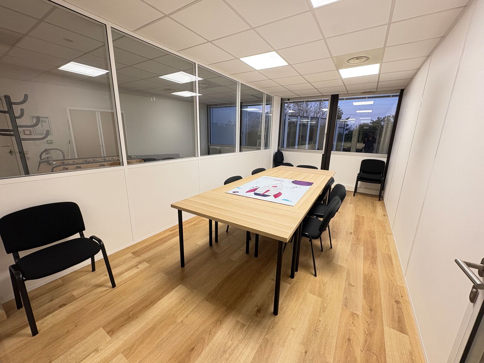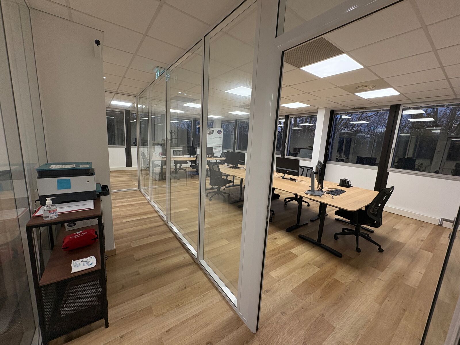 Plateau cloisonné : Accueil, 3 grands bureaux, une salle de réunion, un open space, une grande cuisine équipée