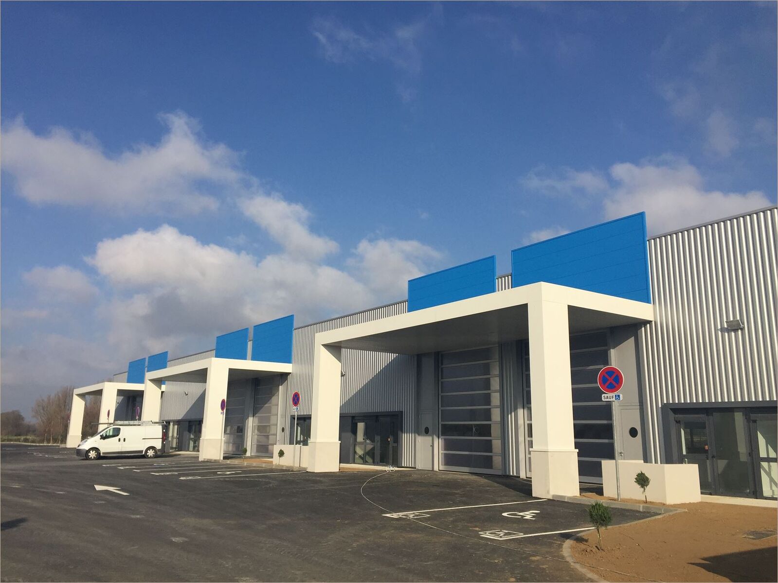 Le bâtiment est construit en structure métallique et bardage double peau, sur un site clos et fermé par un portail électrique