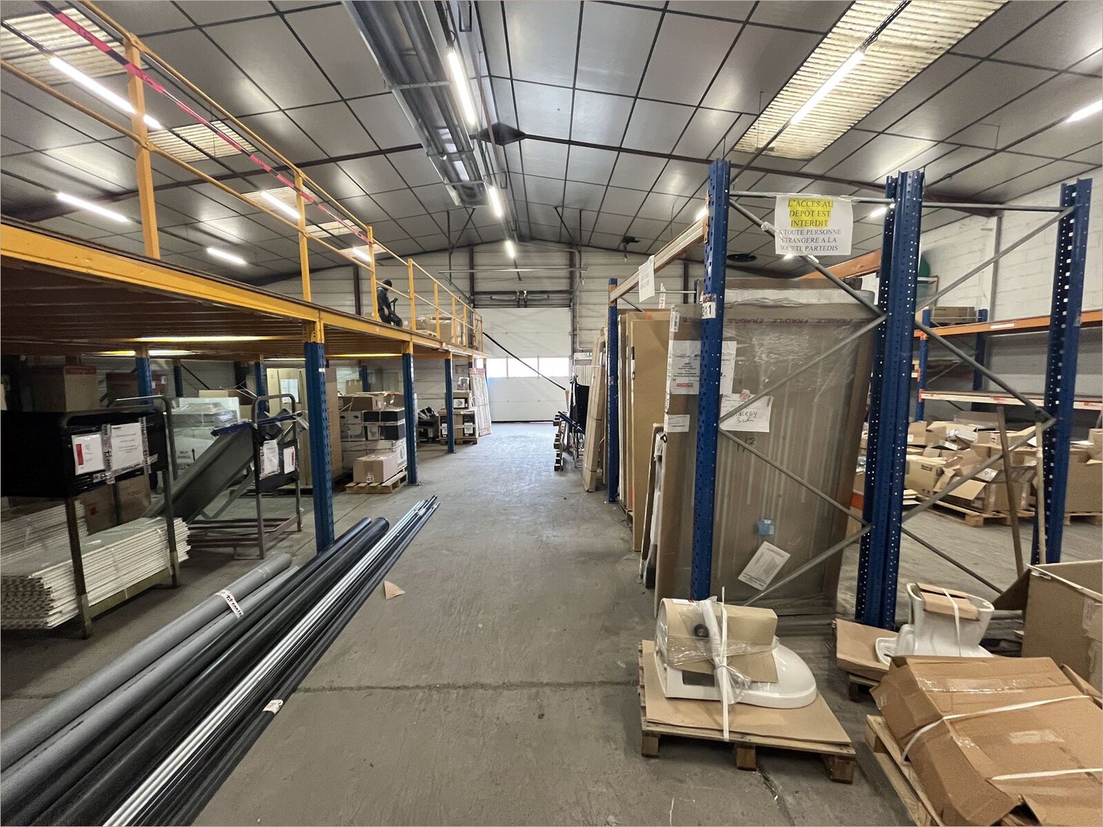 En bordure d'un axe fréquenté, bâtiment de stockage/showroom Un terrain bitumé de 9 109 m² Une partie showroom climatisée Bureaux d'accompagnement et locaux sociaux 6 portes sectionnelles Dalle béton