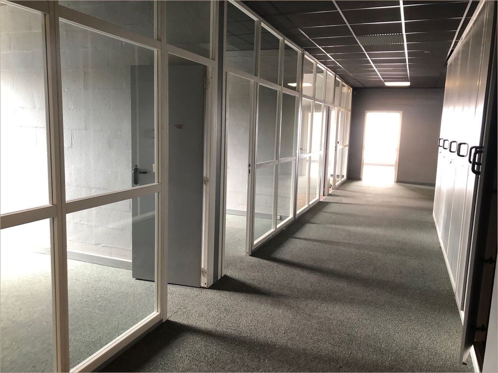 Bureaux comprenant : - 7 bureaux - 1 salle de réunion - 1 réserve - 1 sanitaire / WC - 1 dépôt stockage Moquette au sol