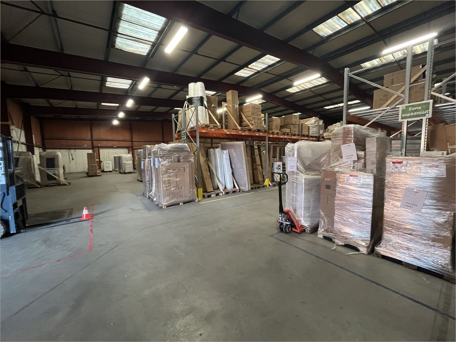 Une partie bureaux de 85 m² avec climatisation réversible, câblage informatique Sanitaires, vestiaires, locaux sociaux Une partie dépôt de 1 265 m² avec dalle béton, portail coulissant Une mezzanine de stockage de 90 m² environ