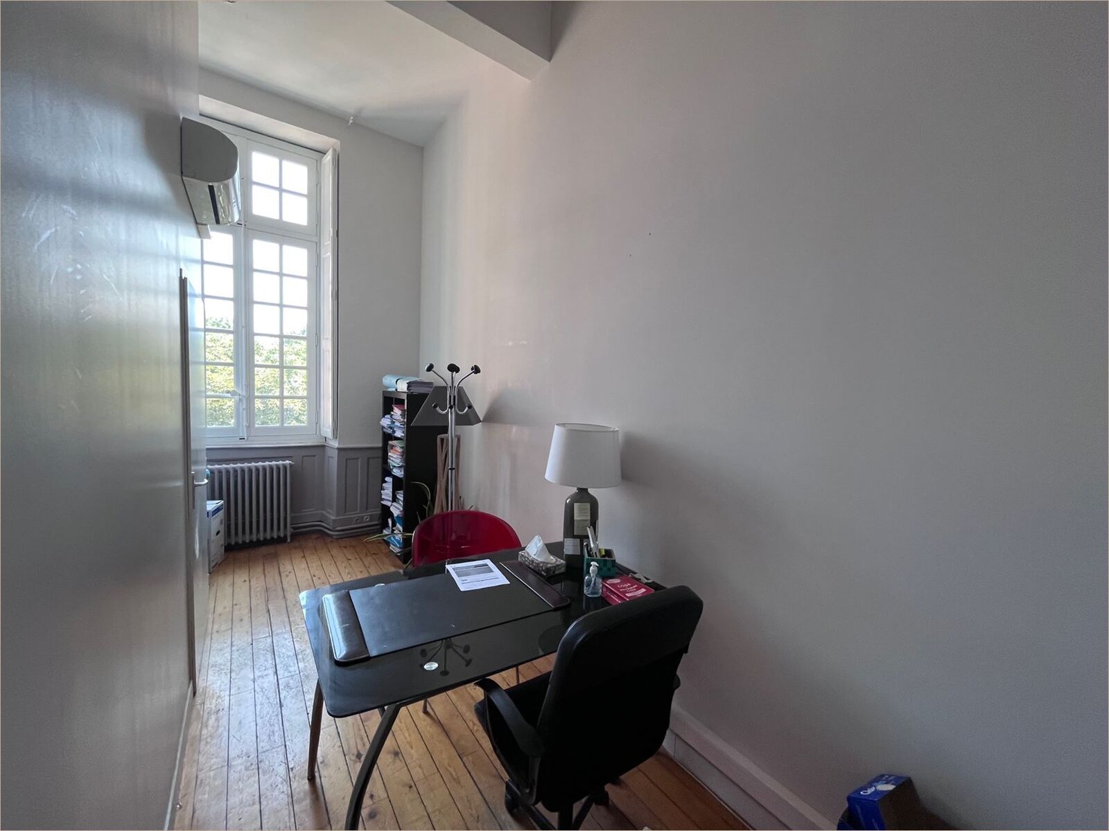 Plateau cloisonné composé : d'une entrée, 8 bureaux, une cuisine séparée, 2 sanitaires Système de climatisation dans certains bureaux