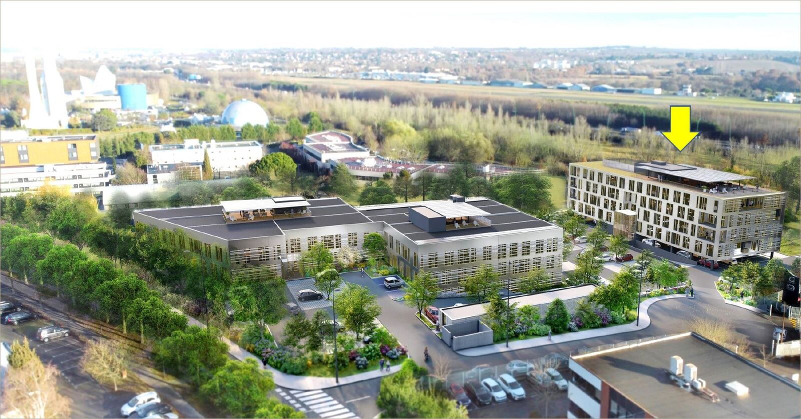 Bureaux à vendre / à louer à l'Est de Toulouse, au coeur du Parc de la Grande Plaine. Immeuble à construire, visible depuis le périphérique. Terrain clos et fermé