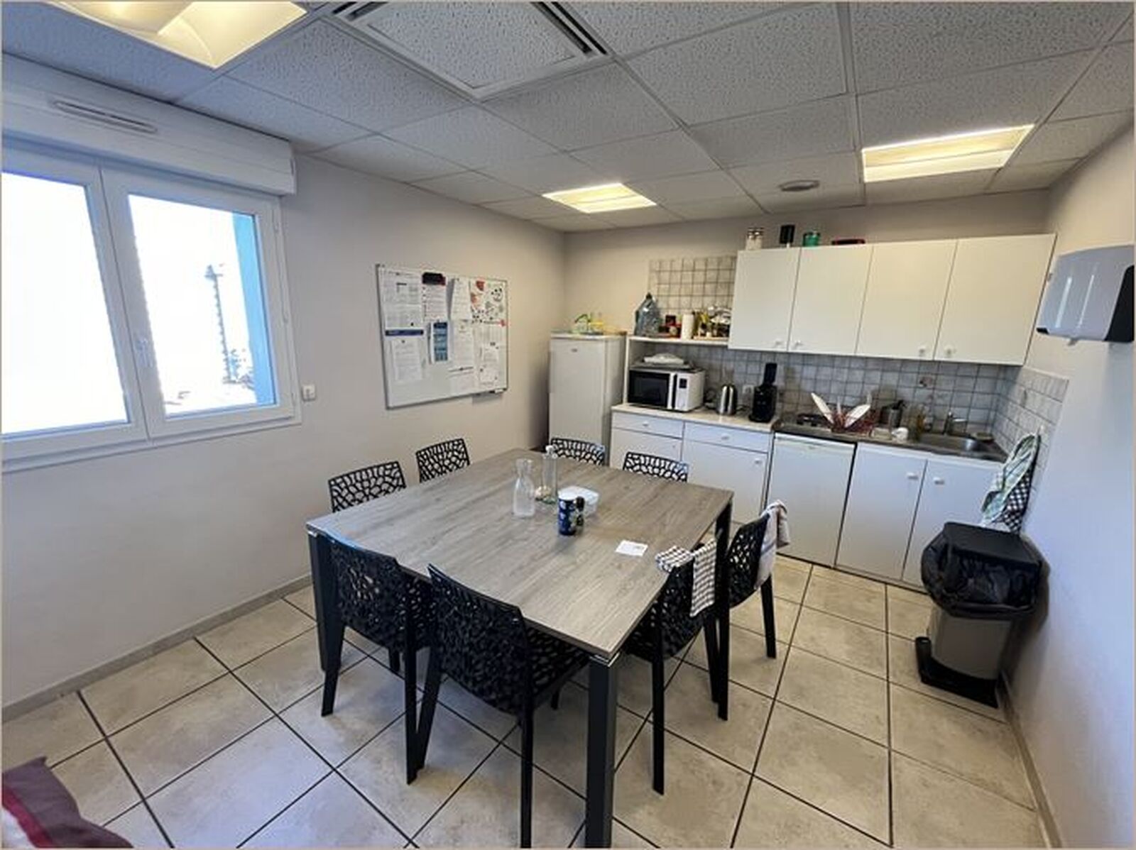 Plateau livré cloisonné : Accueil, plusieurs bureaux simples et bureaux doubles, salle de réunion, cuisine, douche