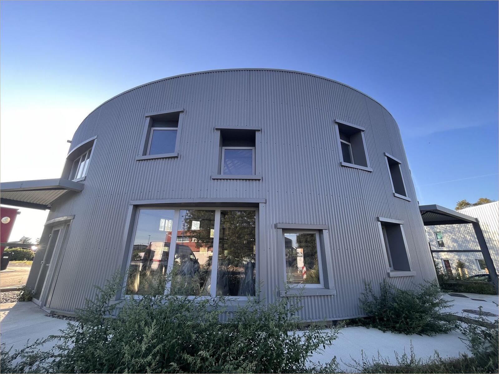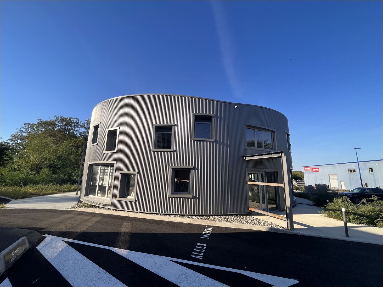 Bâtiment livré Brut en attente de fluides Vitrines posées Nombreuses places de stationnement