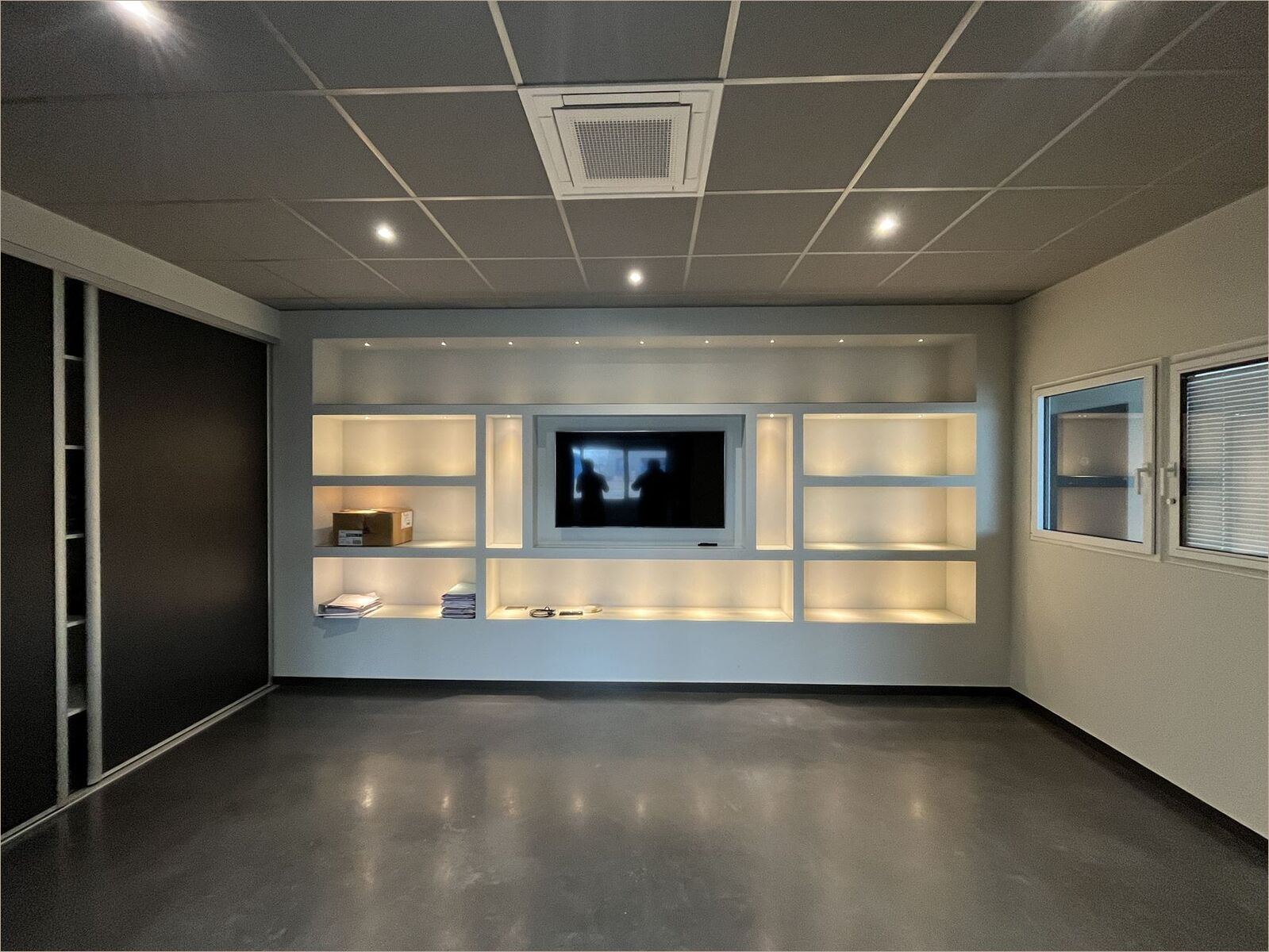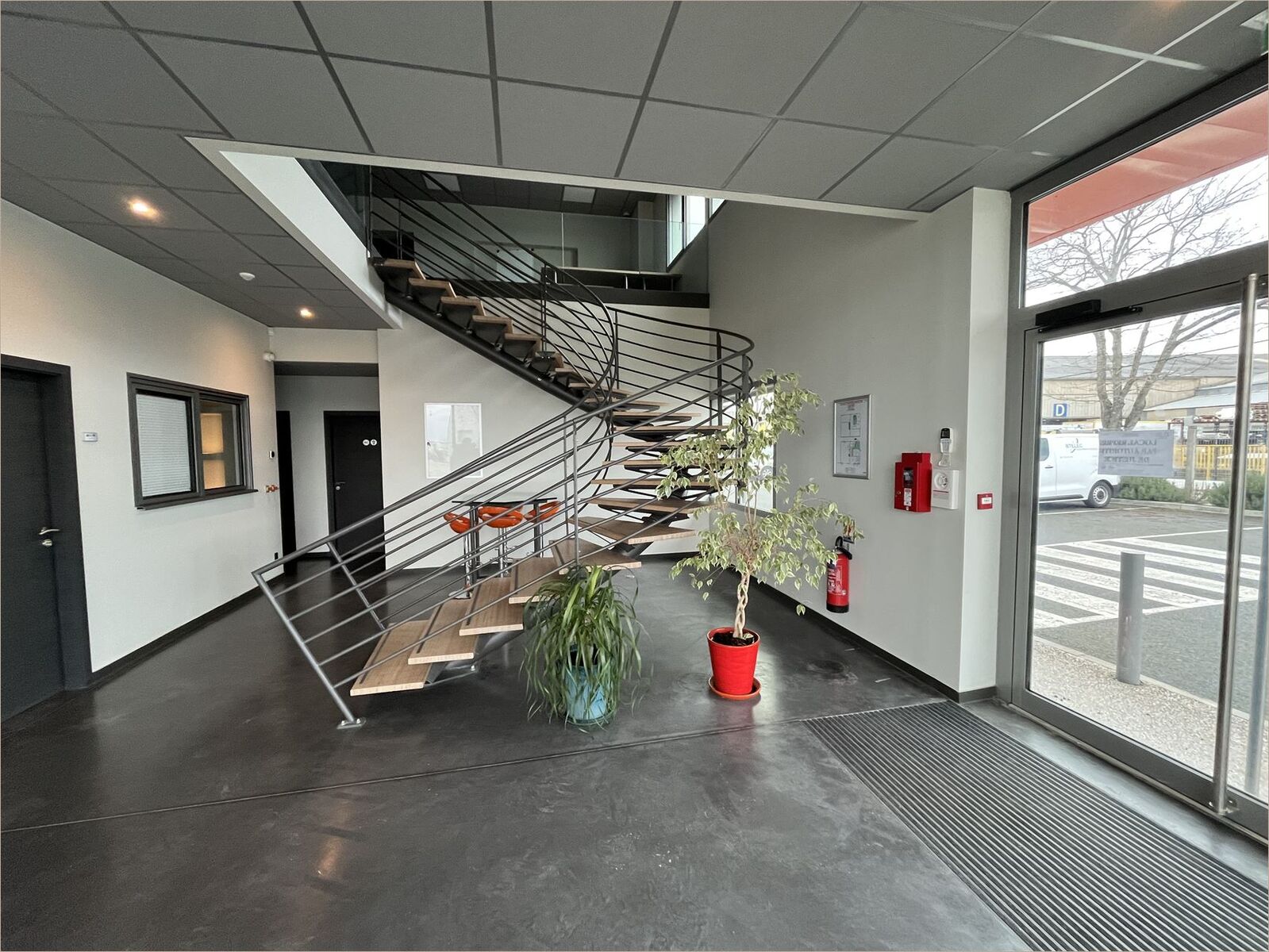 Une partie bureaux de 264 m² sur deux niveaux Climatisation réversible, câblage informatique, fibre optique Sanitaires, vestiaires, douche Réfectoire, salle de réunion, hall d'accueil Une partie dépôt de 270 m² Dalle béton, 2 portes sectionnelles électriques Mezzanine de stockage de 65 m² environ