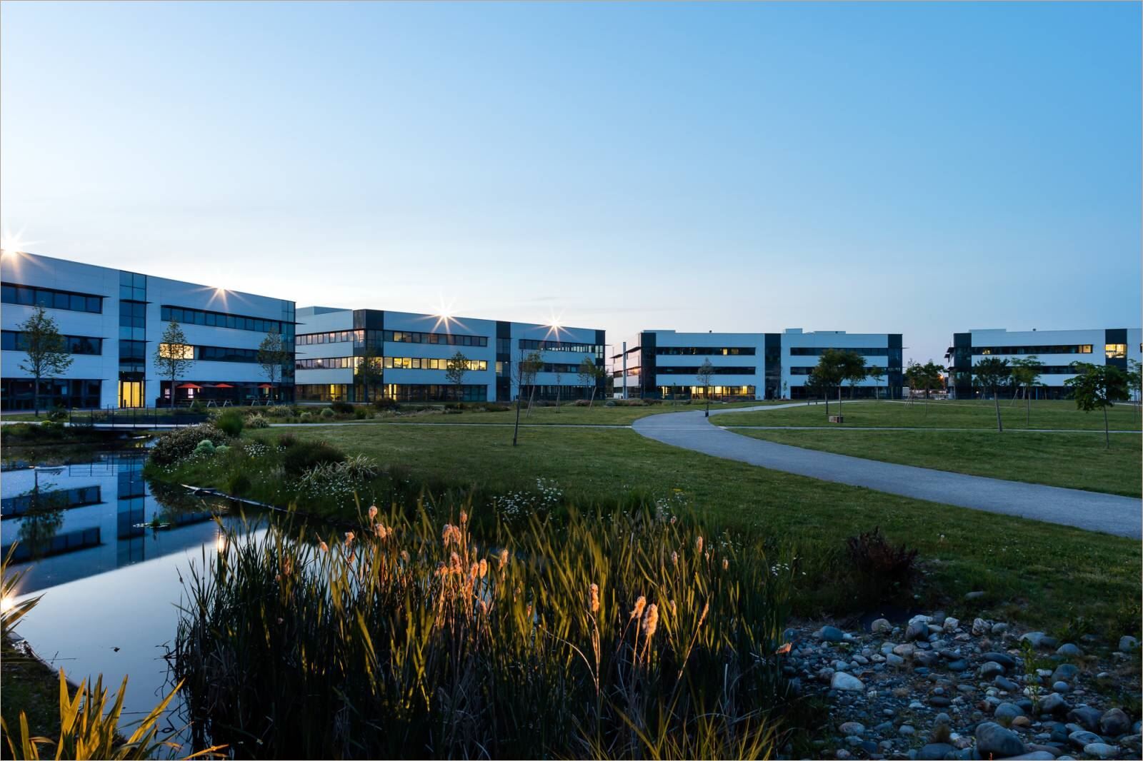 Plateaux livrés en plateaux nus ou cloisonnés (en fonction des lots) dans un cadre agréable avec de nombreux espaces verts et plans d'eau Qualité architecturale des immeubles Fibre optique sur le site Plateaux d'environ 2 000 m² organisés autour d'un patio paysagé Restaurant Inter Entreprises et espace sur le site Crèche Fitness Gardiennage 24h/24h