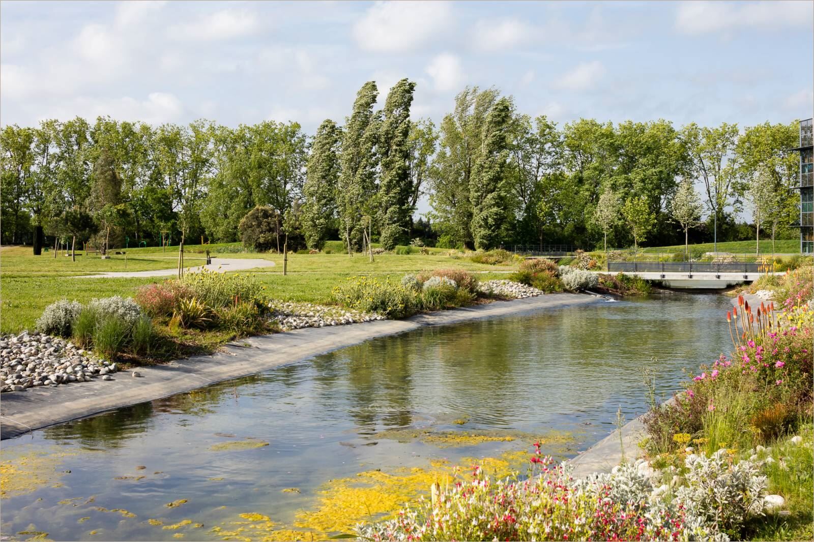 Ensemble cloture de 4 immeubles HQE de standing en R+2 totalisant 24 000 m?, dans un cadre agreable avec de nombreux espaces verts et plans d'eau