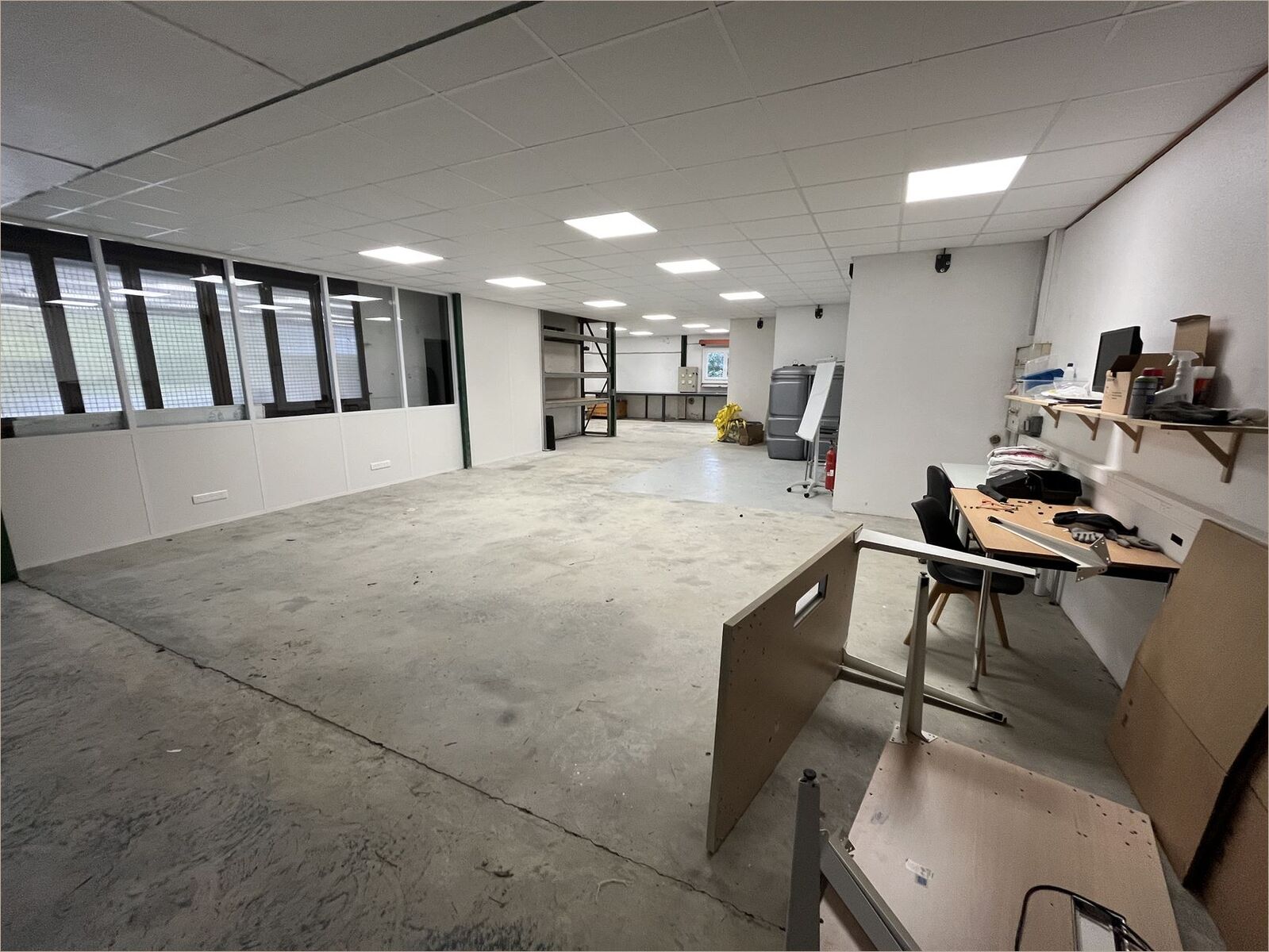Une partie bureaux de 110 m² avec cuisine équipée, sanitaires, salle de bain Une partie atelier de 250 m² avec accès livraison, auvent de stockage, dalle béton, faux plafond, éclairage LED
