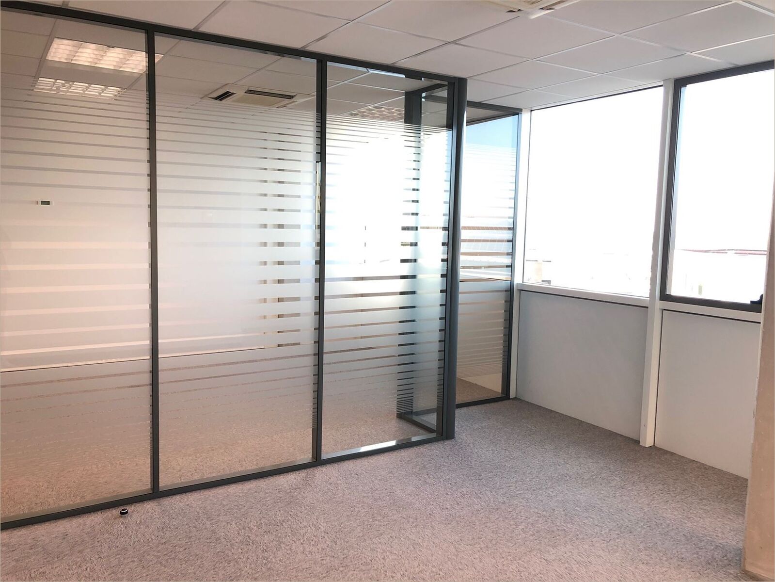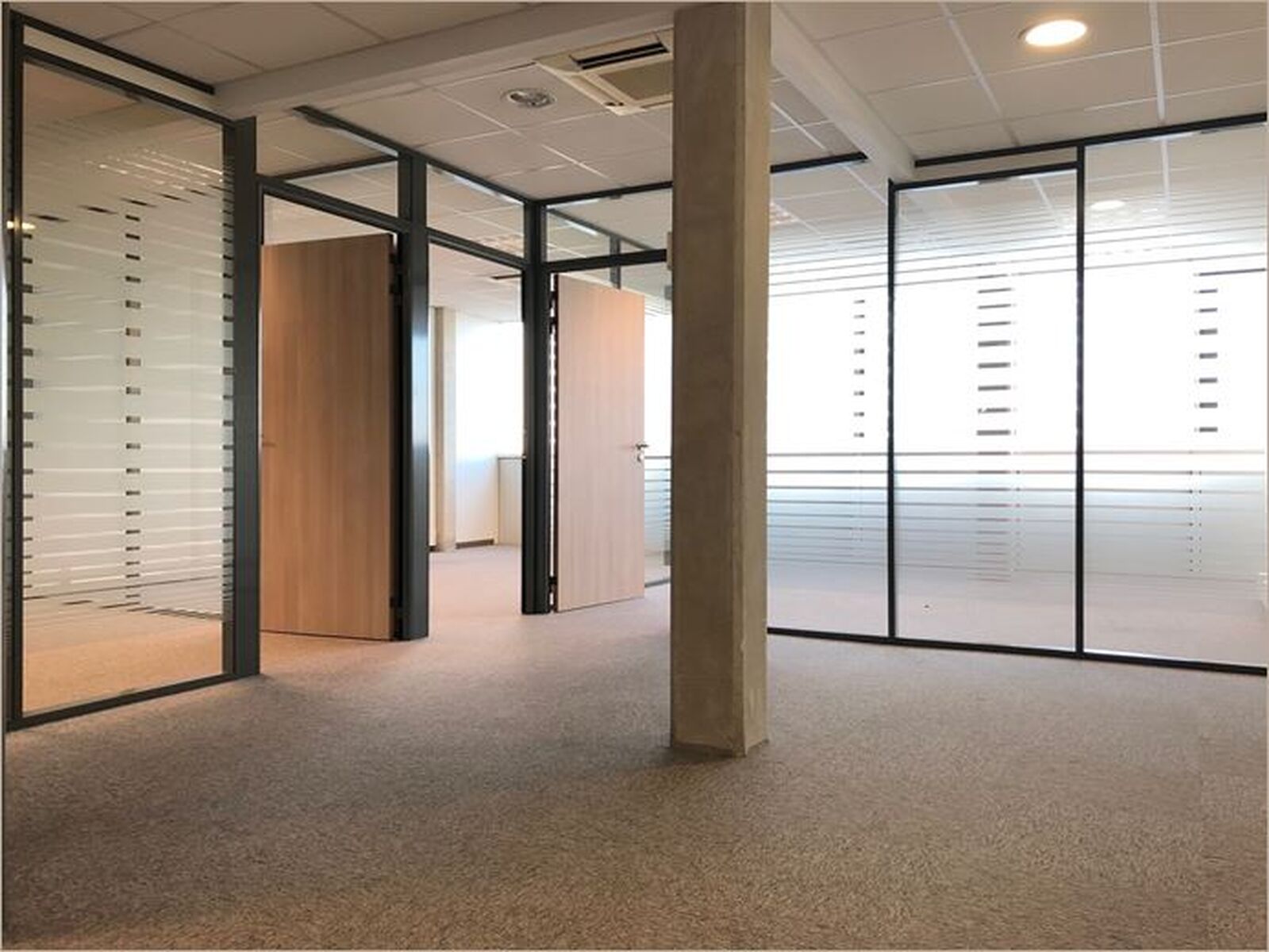 Surface de bureaux située au R+3 Plateau cloisonné : Accueil, 4 bureaux, local technique Système de climatisation réversible Câblage informatique (fibre optique) Ascenseur (Accès PMR) Parking privatif