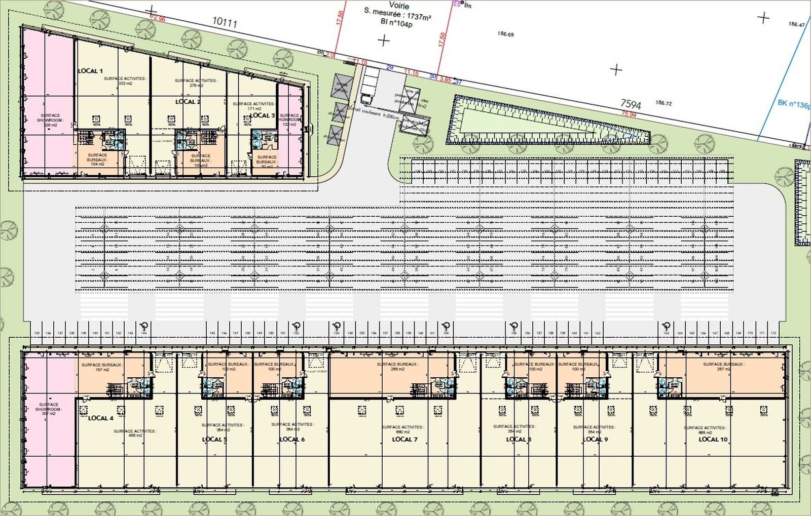Depot avec HSP a environ 6,5 m, porte sectionnelle electrique et dalle betonDans un ensemble immobilier neuf, plusieurs locaux d'activités à louer