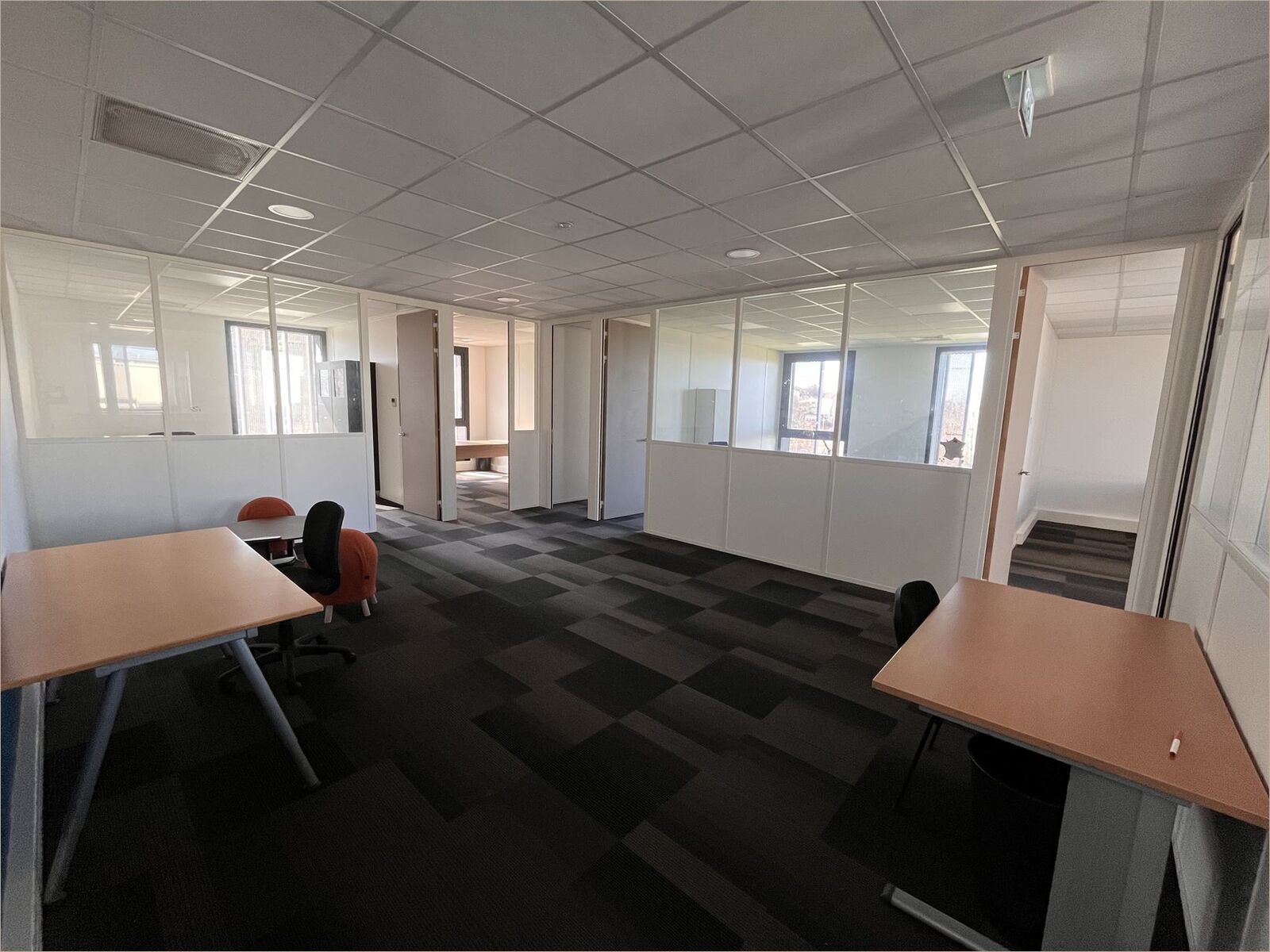 Surface de bureaux de très bon standing située au R+2 du bâtiment H Plateau aménagé : Bureaux simples / doubles, salle de réunion, local technique Câblage informatique (fibre optique) Système de climatisation réversible Terrasses communes Parking : 10 places en sous-sol . L'ensemble immobilier est également composé d'une grande surface alimentaire (Casino), des commerces de proximité, 57 logements BBC, une école privée d'art ESMA et sa résidence étudiante associée . Parfaite visibilité depuis la route de Narbonne Transport en Commun en Site Propre (arrêt face au site) qui assure une liaison efficace et rapide avec le métro (terminus ligne B à 4km)