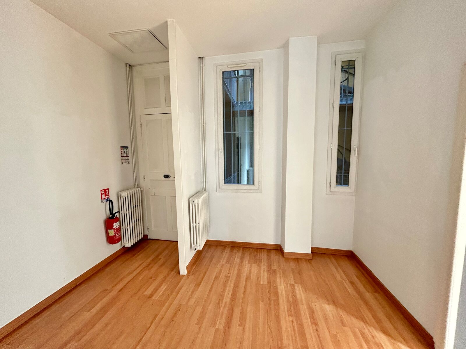 - Aménagement : 4 bureaux séparés + une réserve + un sanitaire privatif