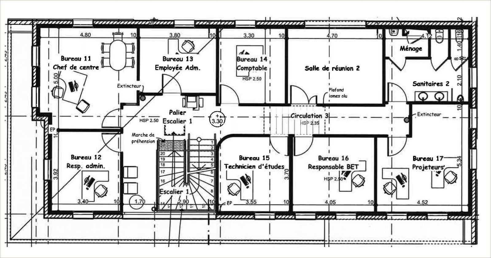 Bureaux lumineux de bon standing situés au 1er étage Aménagement : 7 bureaux, salle de réunion, sanitaires privatifs, Câblage informatique (fibre optique) Système de climatisation réversible Sanitaire privatif Parking : 8 places extérieures