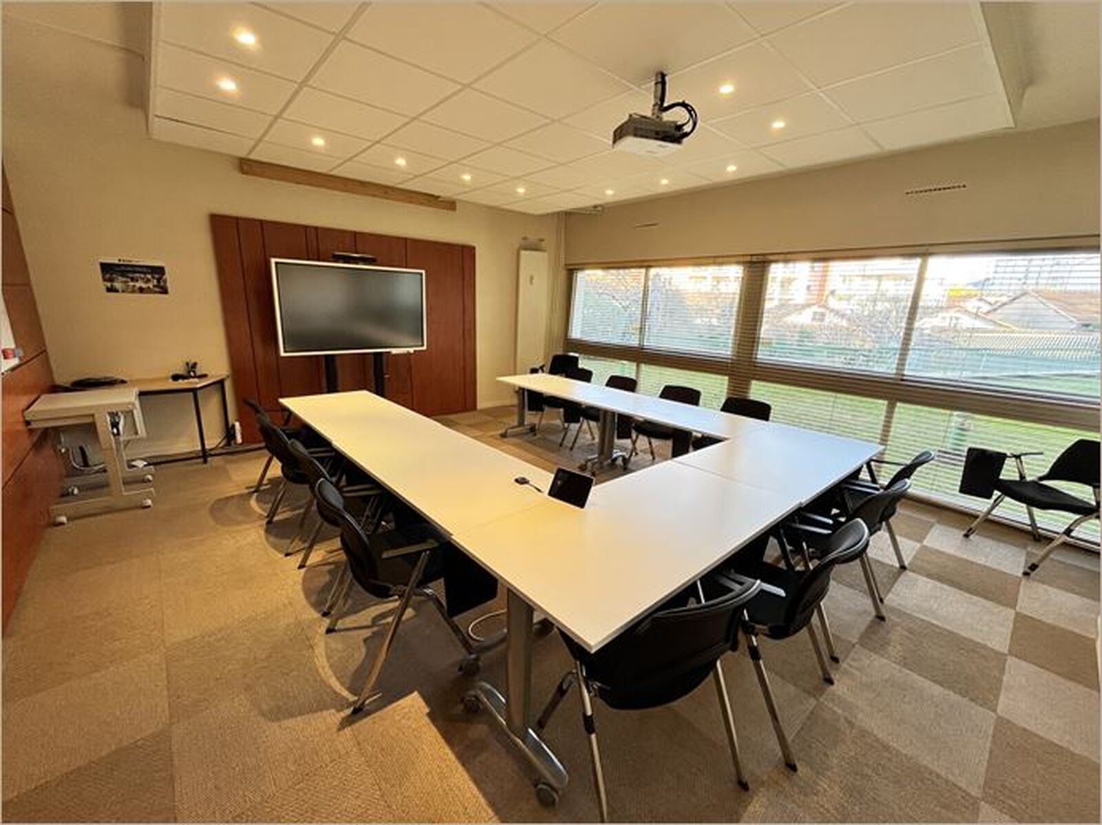 Plateau livré cloisonné : accueil, nombreux bureaux, salle de réunion, salle de pause, locaux technique